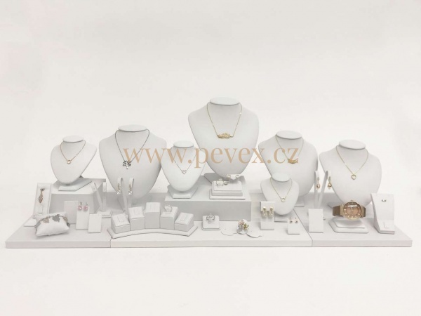 Aranžérský set na vystavení šperků. Komponenty potažené koženkou.