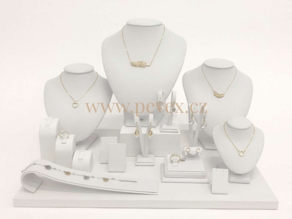 Aranžérský set na vystavení šperků. Komponenty potažené koženkou.