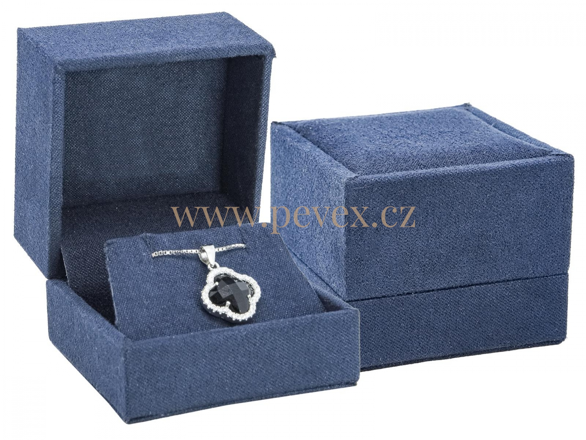 Luxusní krabička potažená textilem s vložkou pro náušnice nebo řetízek.