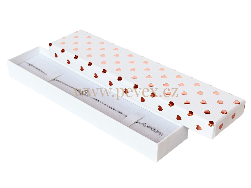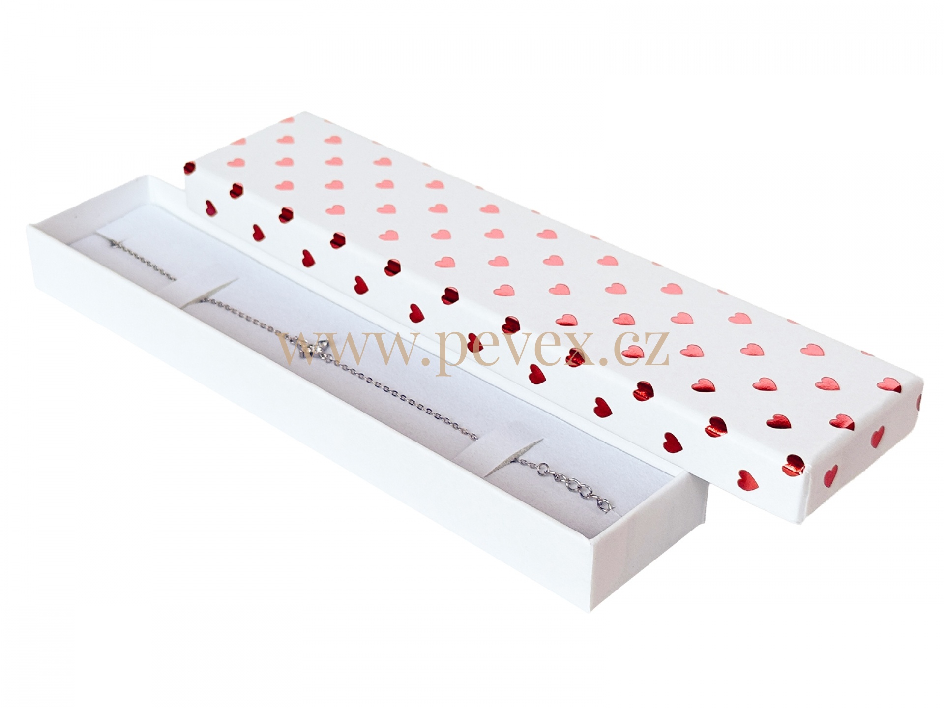 Papírová krabička na náramek s potiskem srdíček. Valentýnský motiv. Molitanová vložka.