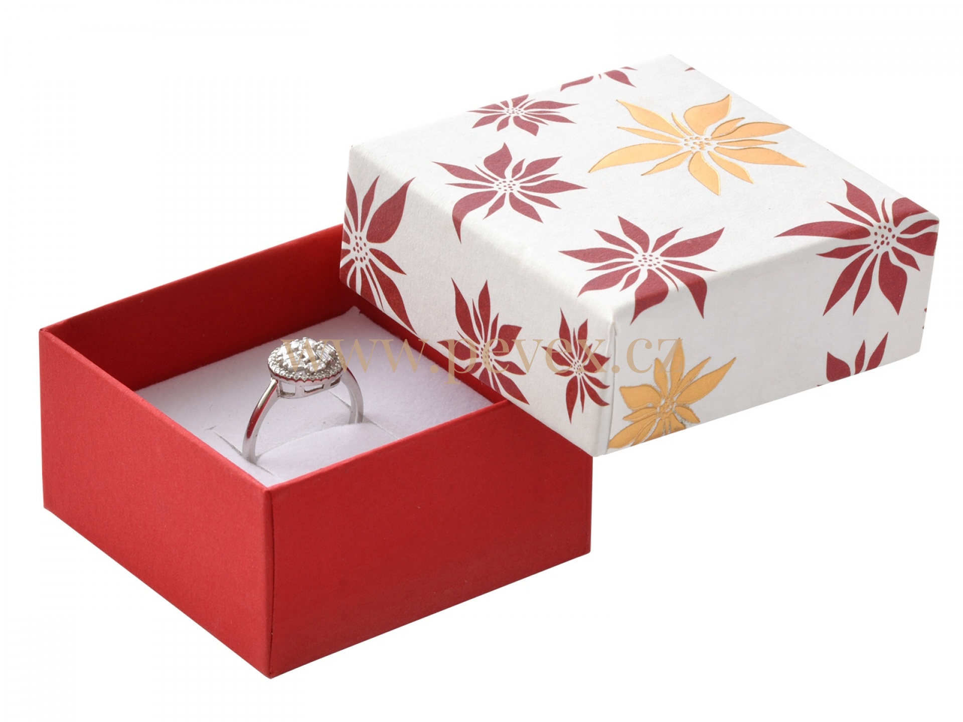 Papírová krabička s molitanovou vložkou pro menší sadu šperků.