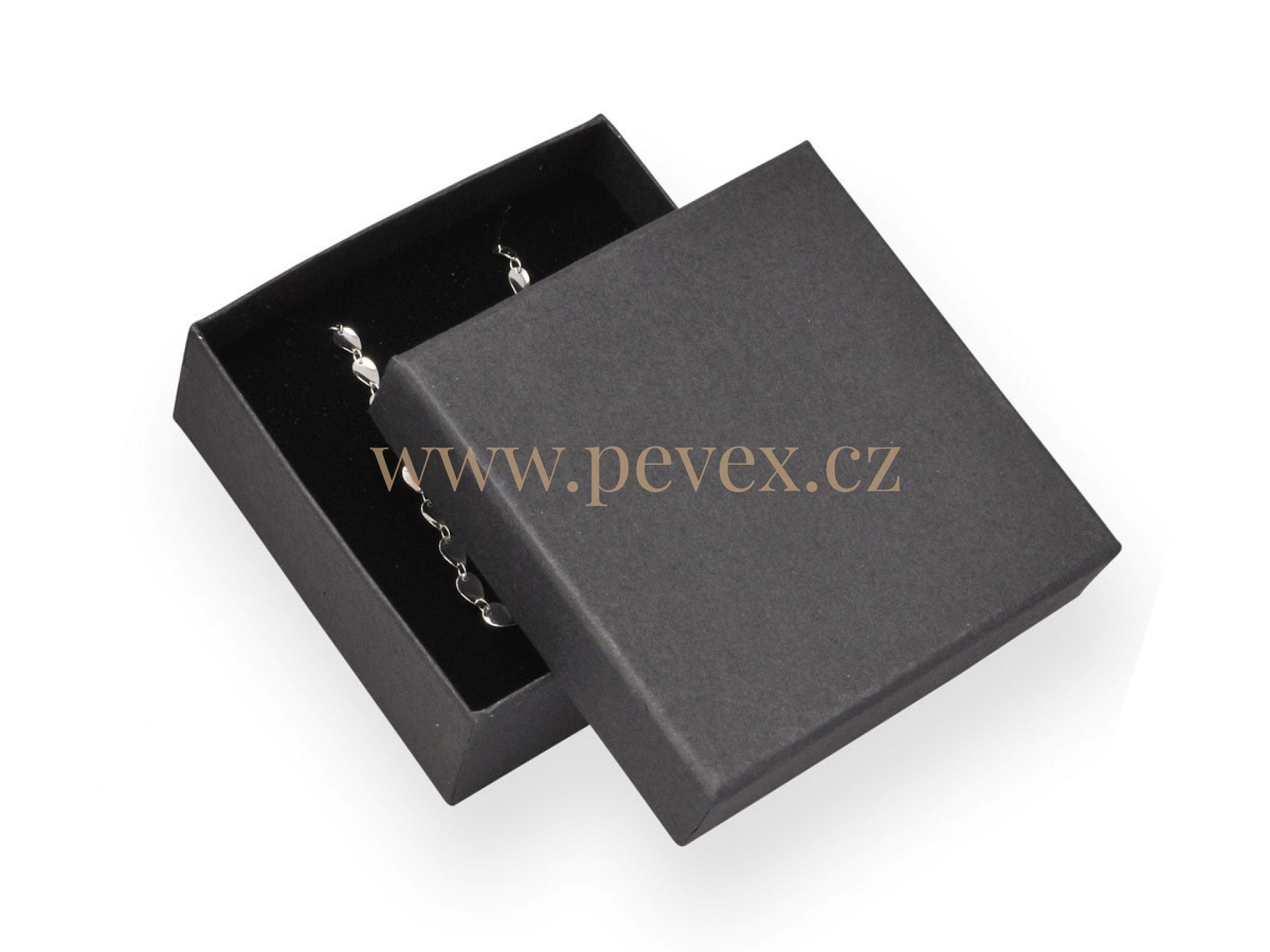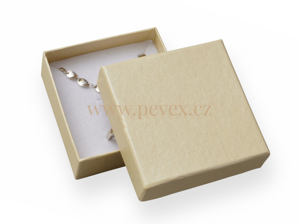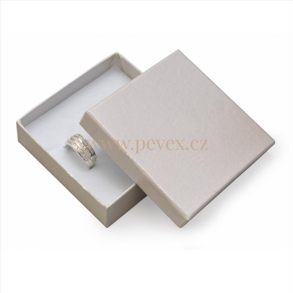 Papírová krabička s molitanovou vložkou. Průseky na střední sadu šperků.