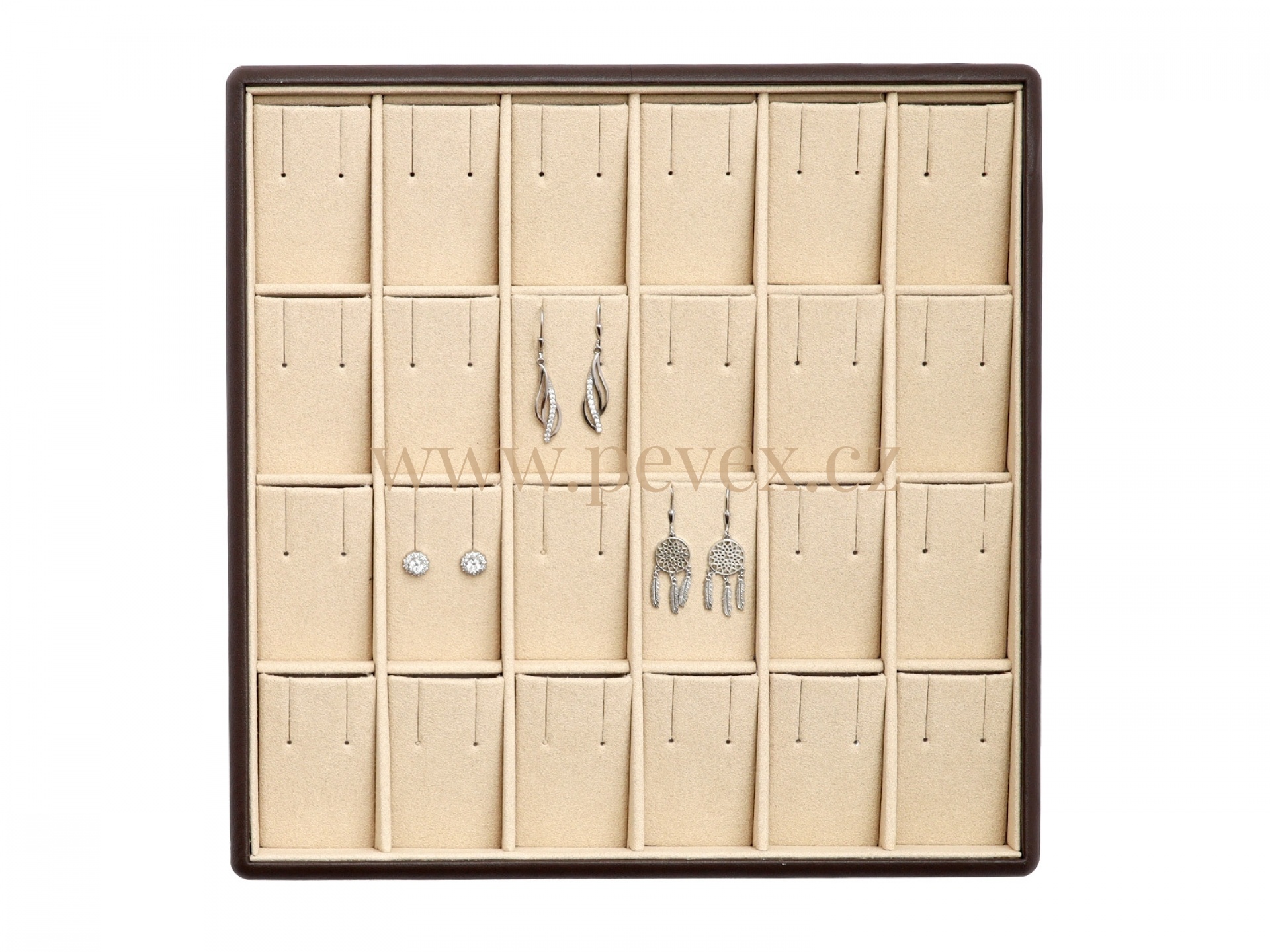 Koženkové plato na vystavení náušnic.