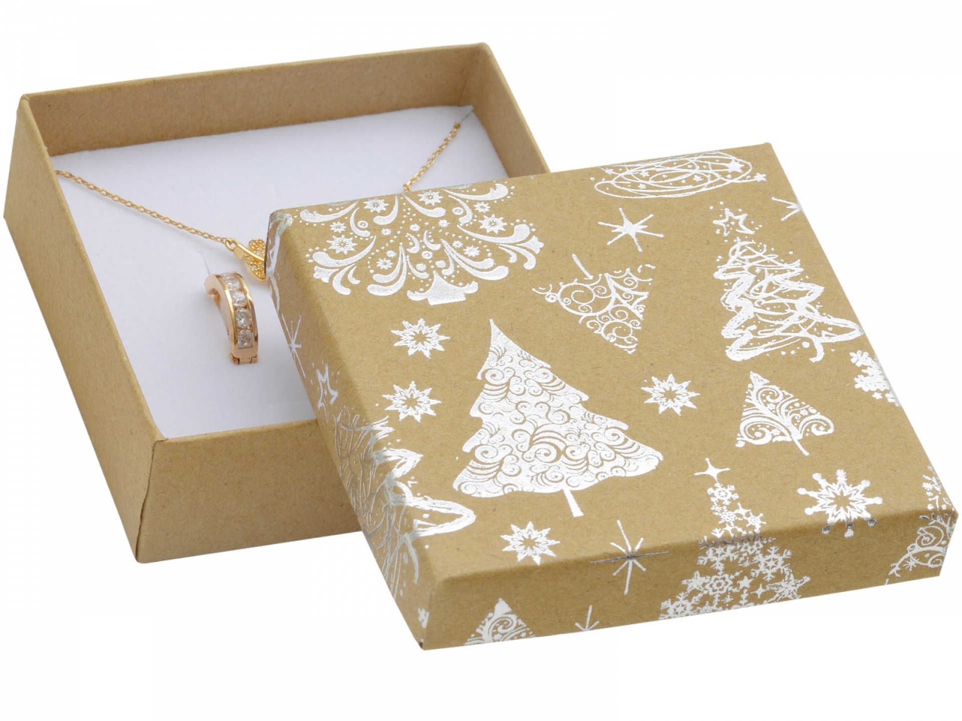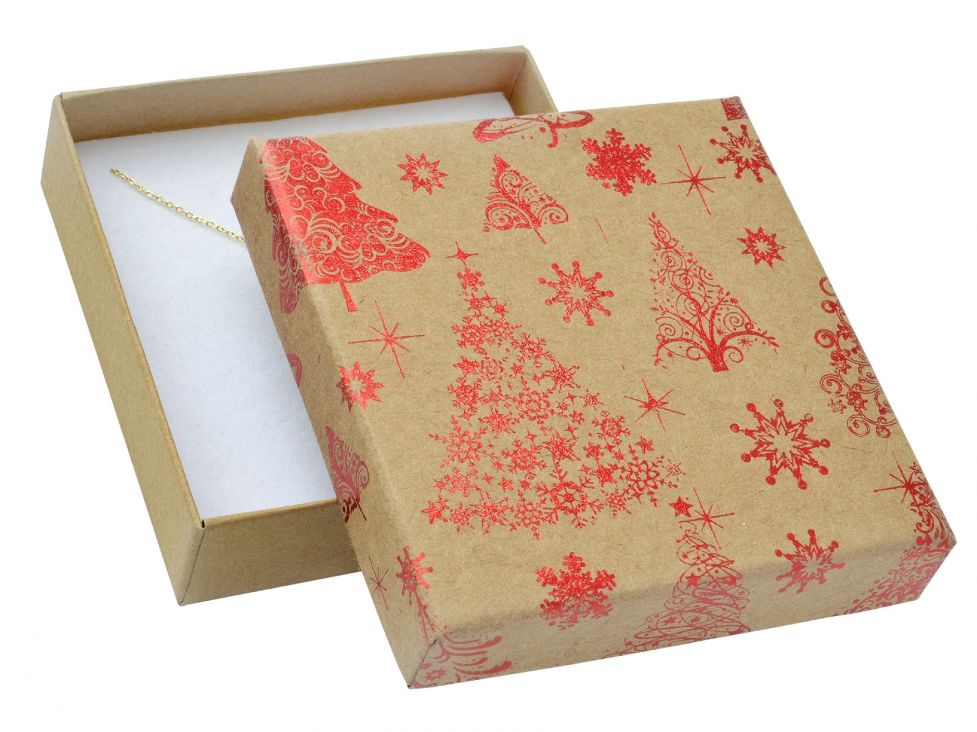 Papírové krabičky s vanočním motivem, molitanová vložka s průseky na šperky. Možnost vybrat červený, zlatý nebo stříbrný potisk.